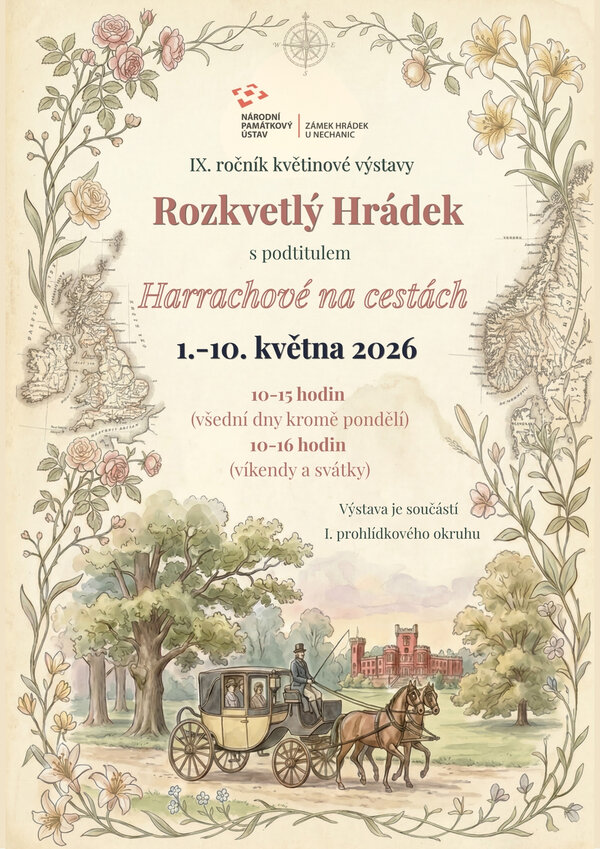 Květinová výstava je od 1. do 10. května 2026 nedílnou součástí I. (základního) prohlídkového okruhu "Lesk a sláva Harrachů". Výstavu není možné navštívit samostatně – bude přístupná pouze v rámci prohlídky I. okruhu s průvodcem a bude zahrnutá v ceně vstupenky na tento okruh.