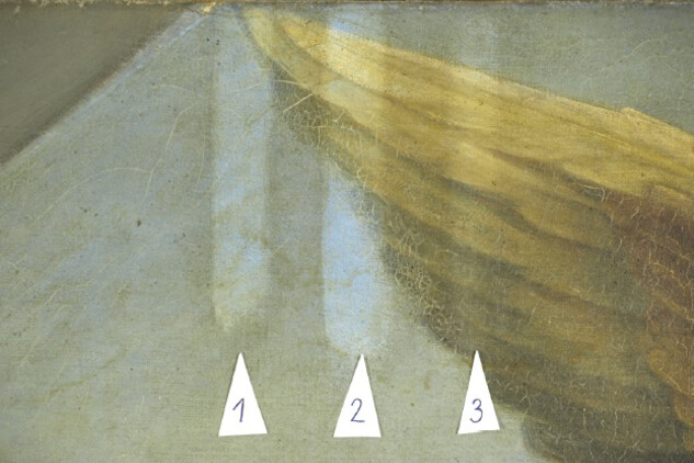 Po sejmutí laku a nečistot se barevná vrstva se dále napustila směsí s želatinou, damarovým lakem a voskem. Retuše byly provedené pryskyřičnými barvami.