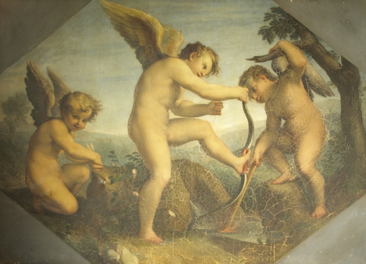 Velkoformátový obraz s výjevem Amorků o kolosálních rozměrech 267 x 205 cm