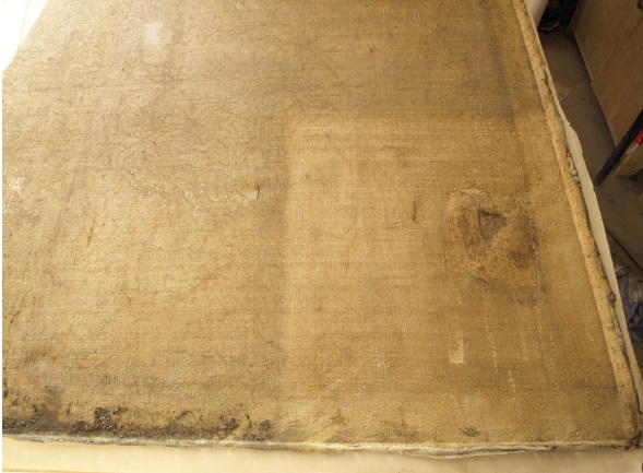 Po sejmutí obrazu z napínacího rámu byly z rubu plátna mechanicky odstraněny nečistoty, následně se rub plátna napustil směsí na upevnění malby na plátně. Okraje plátna byly zpevněny 10 cm širokými pruhy plátna (tzv. strip-linning) pro opětovné napnutí díla na ošetřený dřevěný napínací rám. Veškeré perforace se z rubu obrazu zaplátovaly jemným plátnem.