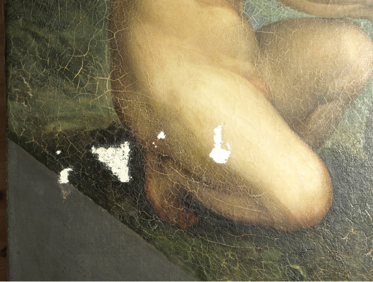 Před restaurováním byla silně zašpiněná, lak na barevné vrstvě silně zažloutlý, což měnilo celkový dojem z malby. Malba byla silně zkrakelovaná / popraskaná, plátno po obvodu zteřelé a lokální perforace byly místy záplatovány a z pohledové strany zakryty starou retuší.