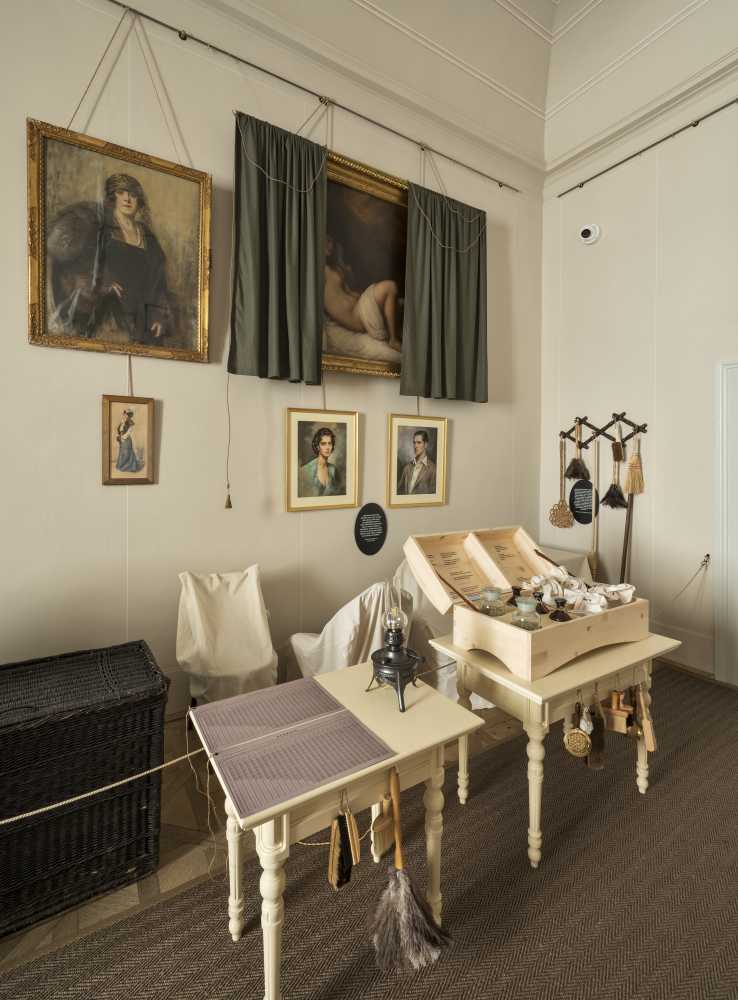 - Prohlídková trasa Zámek Metternichů je zařízena s použitím historických ochranných prostředků, přičemž místnost v nepřítomnosti šlechty je koncipována jako studijní prostor historických postupů péče o interiér.